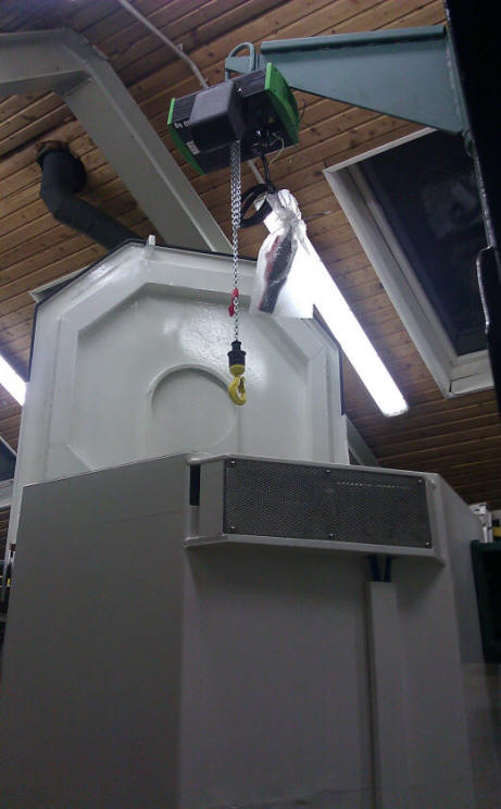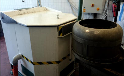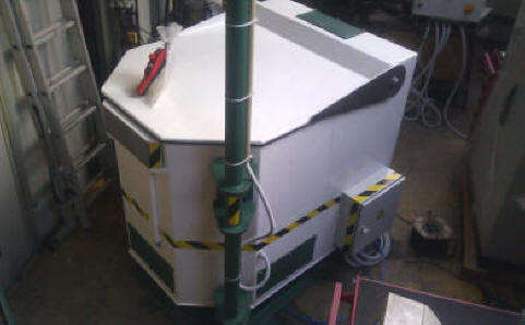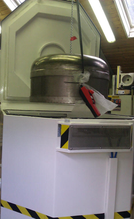 OBDobdelovalnega procesa.Sušenje poteka v bobnu (košari) katero z obdelovanci vložimo v centrifugo in jo po končanem sušenju zopet dvignemi iz centrifuge.Za manipulacijo košare uporabljamo ročno vodeno električno dvigalo, ki je pritrjeno nad centrifugo in je krožno horizontalno pomično.